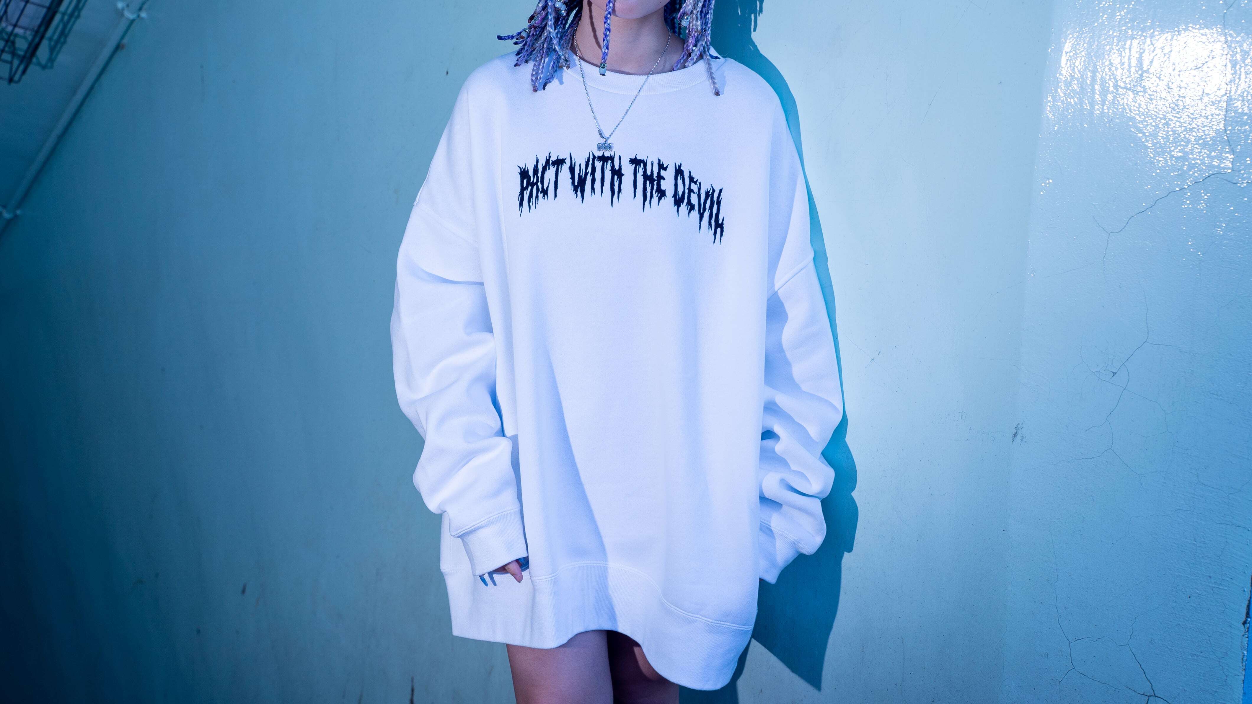【自由東京 2024 A/W Collection】 PACT WITH THE DEVIL Sweater COLOR/WHITE/BLACK WHITE/BLACK RED/BLACK BLACK/ M L XL 身丈 67 71 74 身幅 69. 72 75 肩幅 67 70 73 袖丈 50 51 53